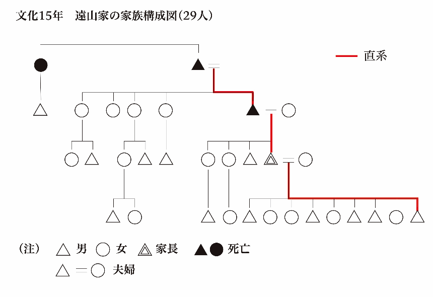 近世末期から明治期にかけて急速に拡大した養蚕経営の労働力確保と、山間の集落生活における土地条件の制約から分家創出が困難であったことが「大家族」制を展開させることになった主な原因と考えられています。