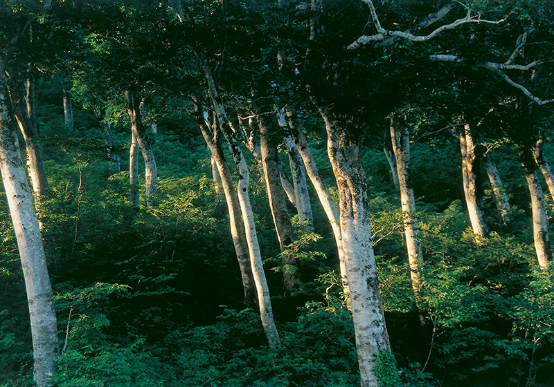 大白川之森最显著的特征,便是在山毛榉林中混生着巨大的水楢。这些水楢巨木平均直径达116公分,最大直径更可达208公分,是日本罕见的巨大树木。